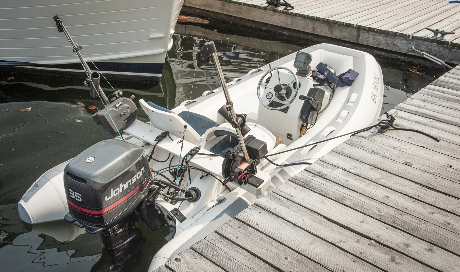 great dinghy tricked out for salmon fishing