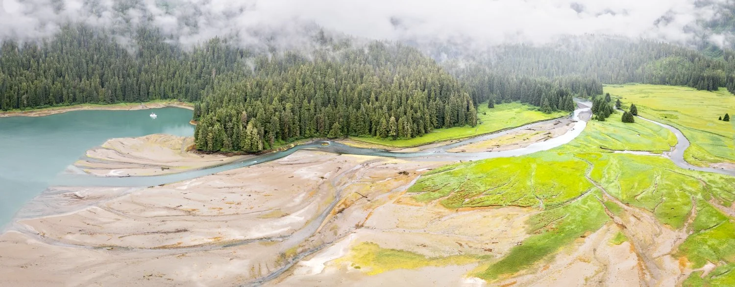 Still, nature gave us a few surprises. Karen spotted a Sitka black-tailed deer picking its way along the shoreline. And just before low tide, we saw nearly 60 harbor seals lounging on the alluvial flats. No rocky haul-outs here, so they made do with the muddy sprawl—something we’ve never witnessed before. By high tide, they’d vanished, save for one lone swimmer patrolling the cove.